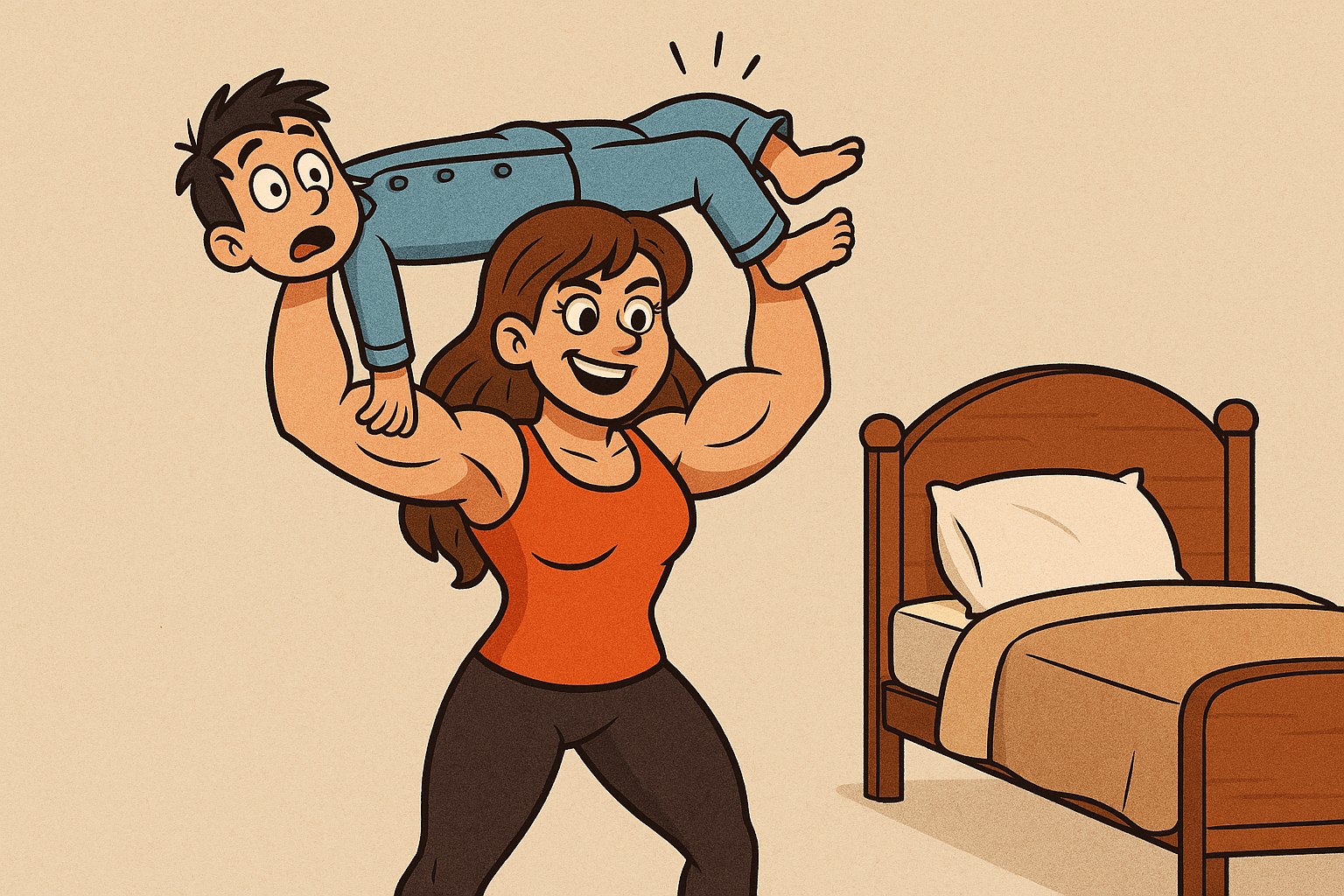 Crazy story, I took my partner to the gym with me. To my shock, the next day I woke up to the motion of her overhead pressing me with her new 20 inch arms. You can probably tell that was a joke, you’re not going to wake up looking like Arnold Schwarzenegger, muscle gain is a very slow process for men and women. I hear, “I don’t want to get too big” a lot. Trust me, most men weight training have been trying to get "‘too big’ for years!
